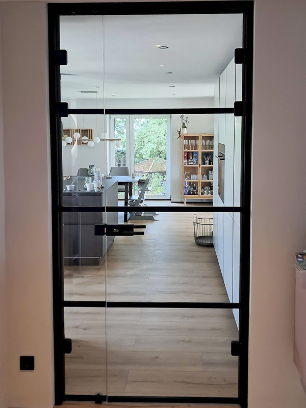 Glastrennwand mit Schiebetürsystem im Loftstyle